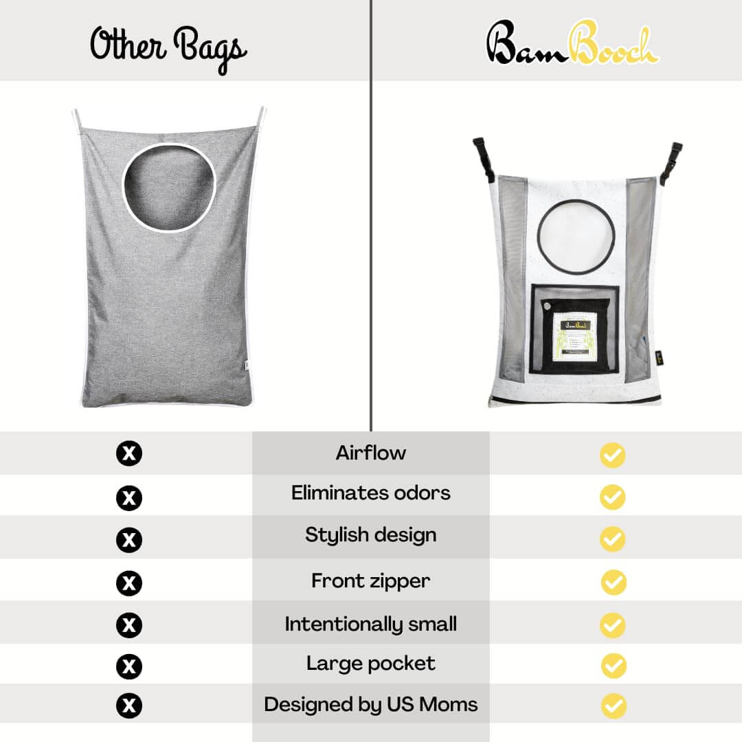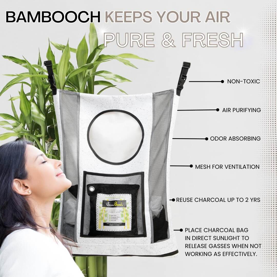 NOT YOUR ordinwy HAMPER, Air Purification, Natural Odor Elimination, Breathability for Soiled& Wet Items. Every home has a pile of unsanitary or stinky laundry washed separate from the rest. We made the BamBooch Hamper Bag for that.